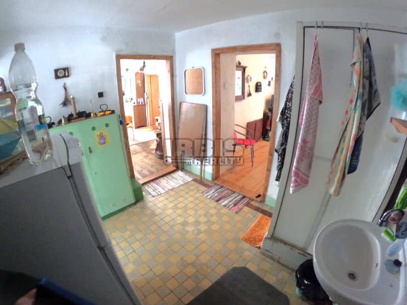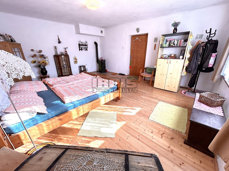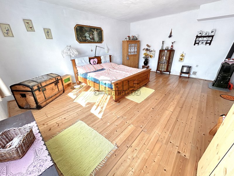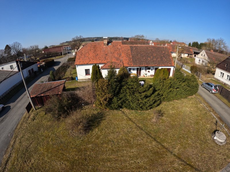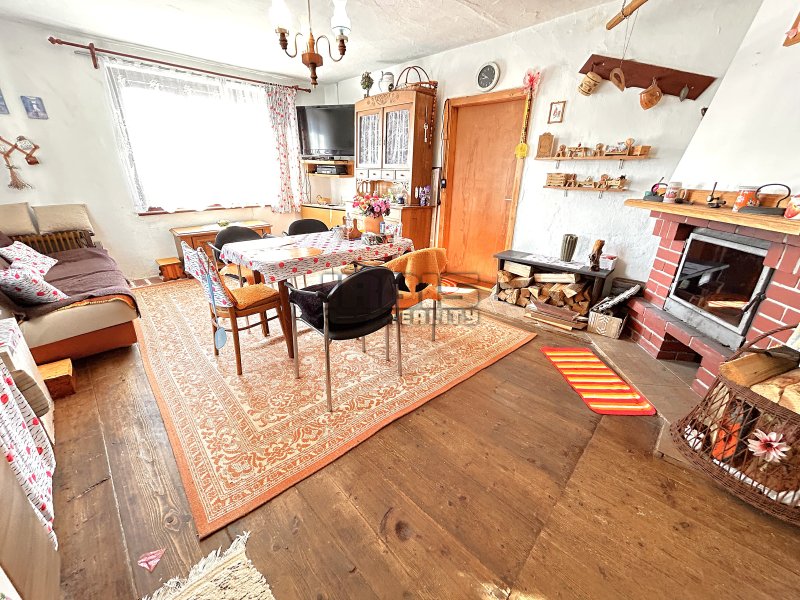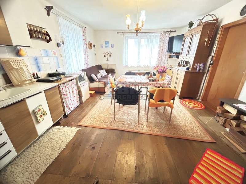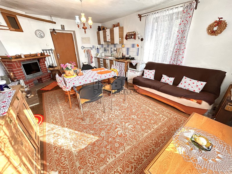 Nabízíme k prodeji rodinný dům, který se nachází kousek od centra obce Skašov, na Plzni – jihu. Dispozice obytné části je 3+KK o celkové výměře cca 75 m² s možností dalšího rozšíření. Z verandy (rozměry místnosti cca 1,5 x 3,8 m) vstupujeme do předsíně s koupelnovým příslušenstvím (umyvadlo, sprchový kout) s cca 8 m². Odsud vedou dále dva samostatné vstupy. Jeden do dětského pokoje cca 12 m² a druhý do prostorné místnosti obývacího pokoje s kuchyňskou částí (rozměry místnosti cca 4,1 x 5,6 m), z níž je pak průchod dále do ložnice (rozměry místnosti cca 4,7 x 5,6 m). Větší část obytných místností je orientována od jihu na západ. Součástí prodeje je i většina vybavení.